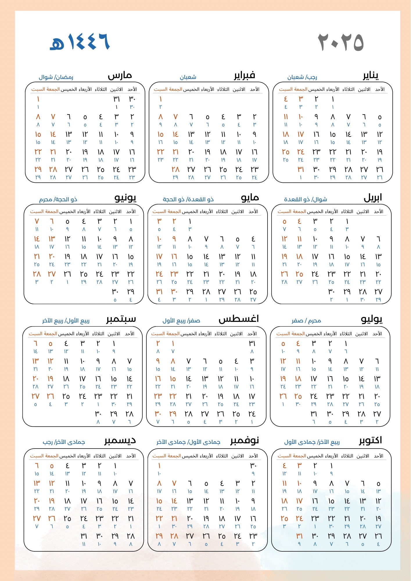 ٣- تقويم ٢٠٢٥ و كذلك ٢٠٢٦: هجري وميلادي