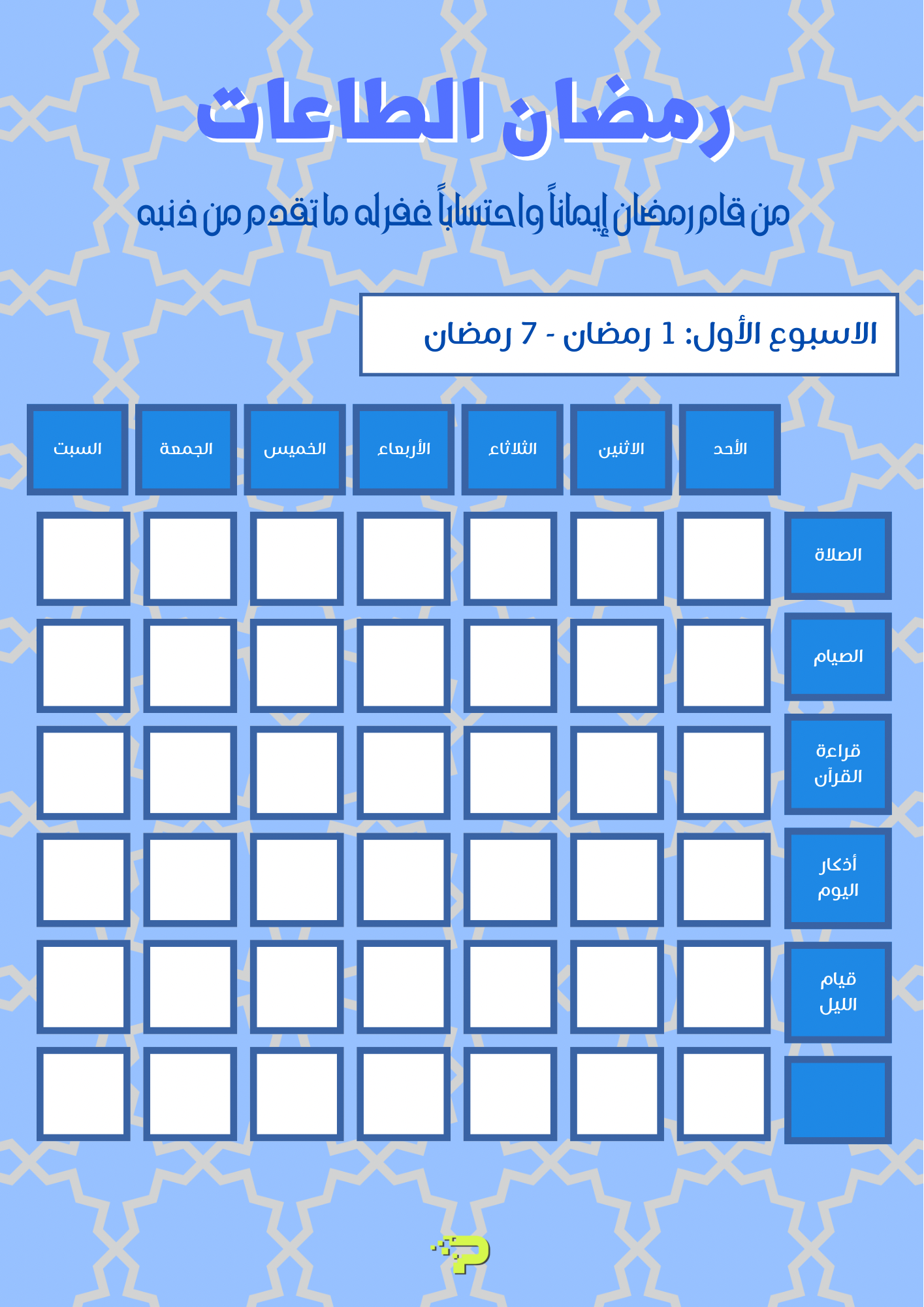 اجعل رمضان هذا العام مميزًا لأبنائك! 🌙 بفضل هذه الجداول، ستتيح لهم فرصة تطوير عادات روحية إيجابية، والتنافس بشكل صحي مع أصدقائهم.