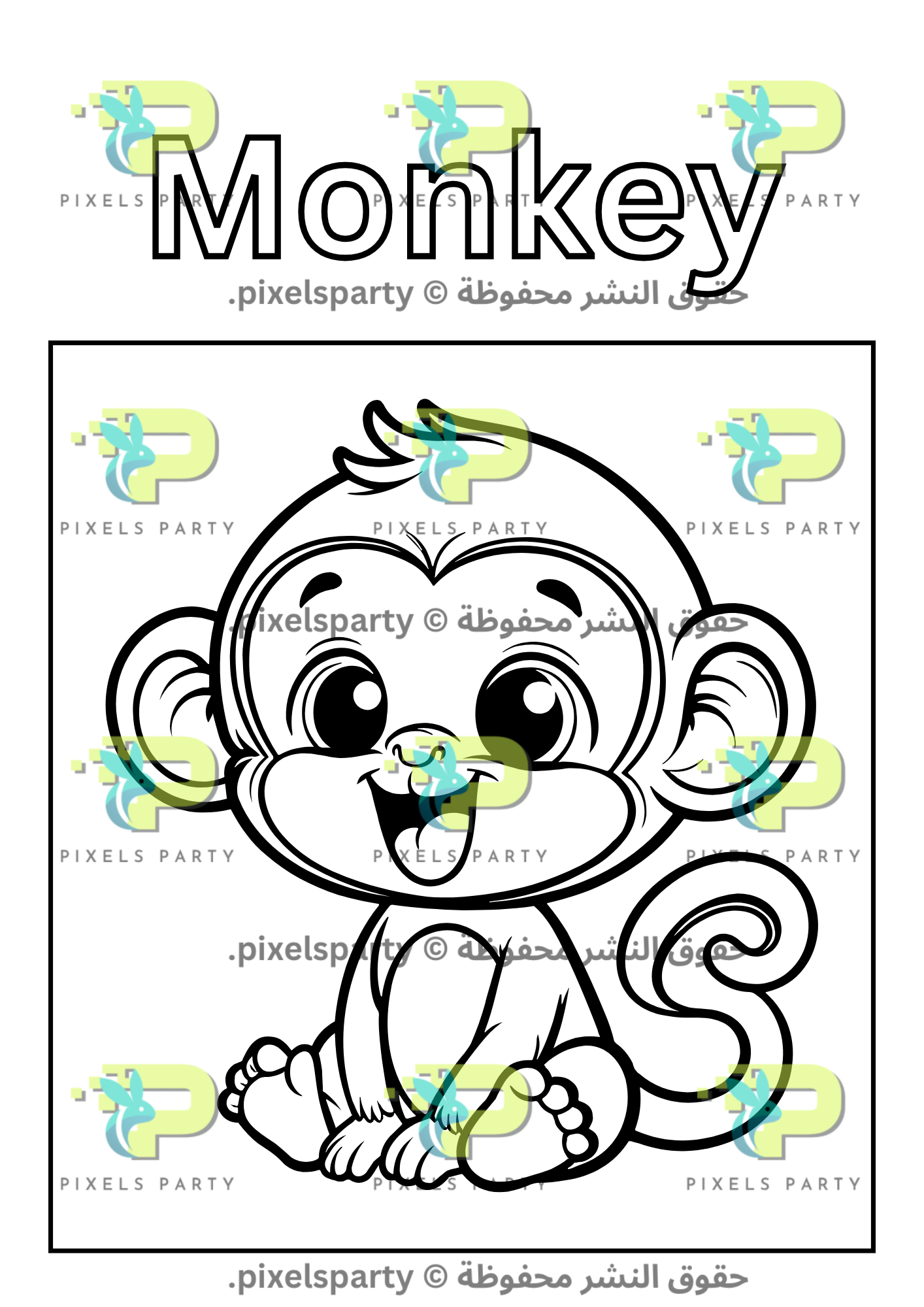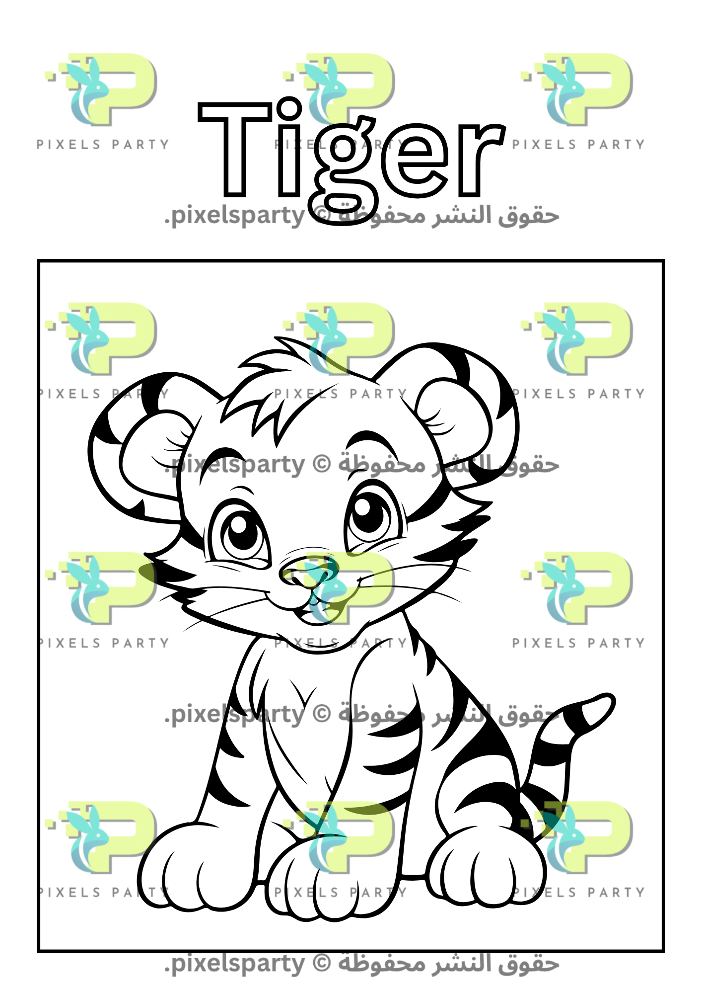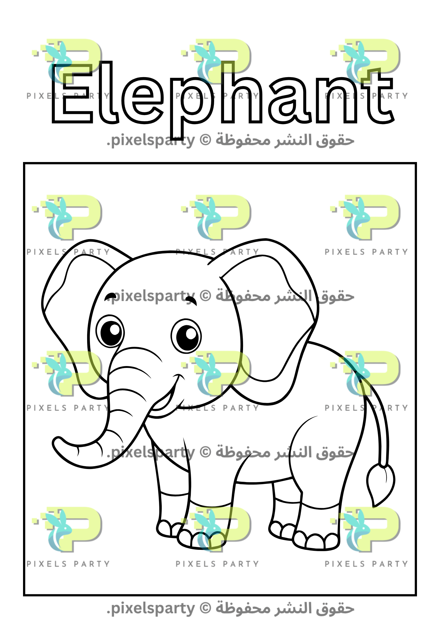 📄 يحتوي على ٢٠ صفحة من الرسومات الكبيرة والواضحة التي تسهّل على الطفل التلوين، مع كتابة اسم كل حيوان بالإنجليزي بخط واضح أسفل الصورة.